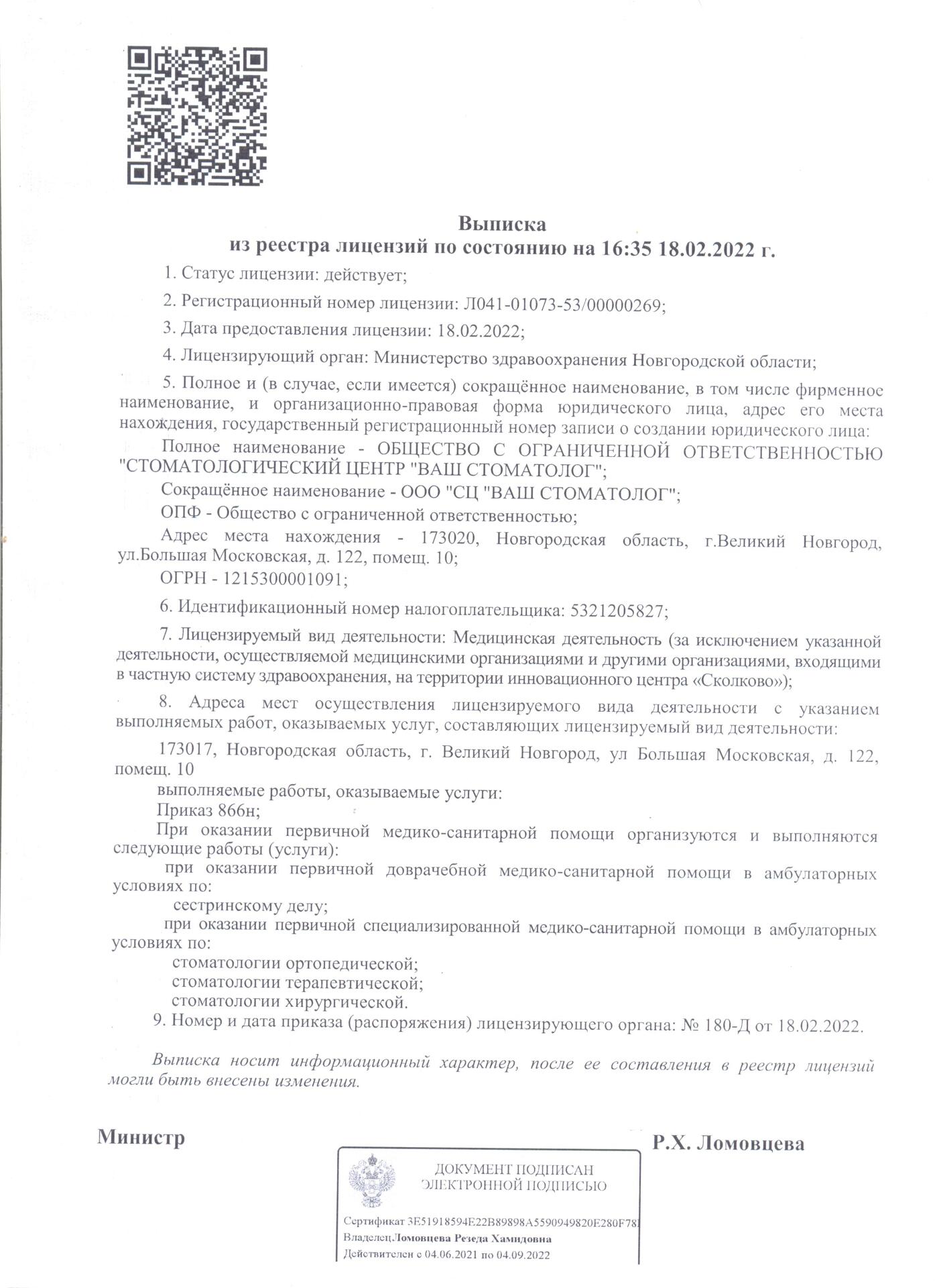 Лицензия ЛО41-01073-53/00000269 от 18.02.2022г