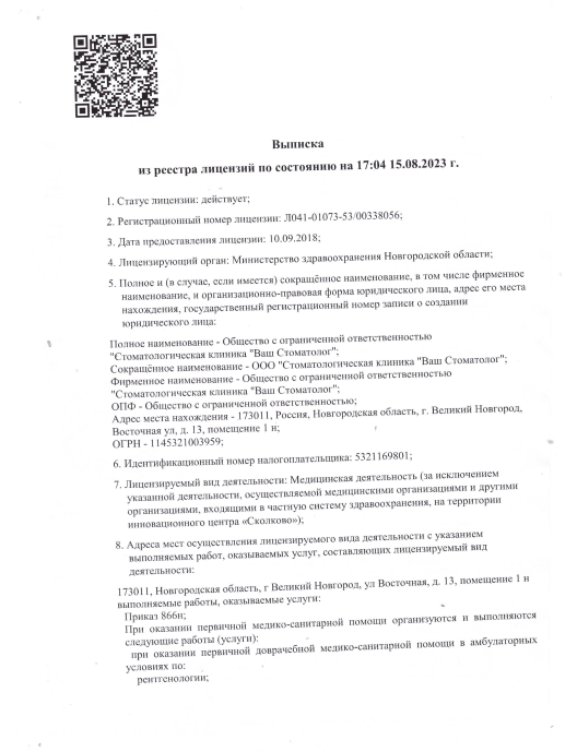 ООО «Стоматологическая клиника «Ваш Стоматолог»