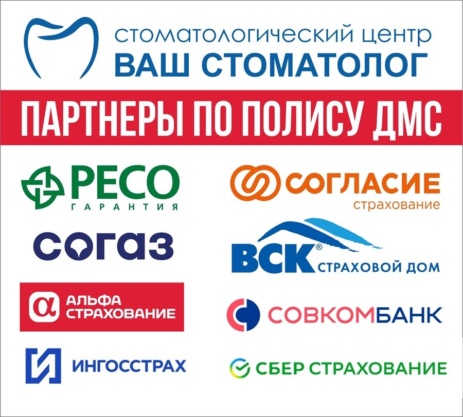 Уважаемые пациенты! Наших партнеров по ДМС все больше ,значит у Вас больше возможностей бесплатно воспользоваться стоматологическими услугами Ждем вас на лечение по полису ДМС!*
